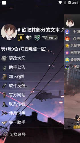 7、点击头像还可以快捷更改大区、切换账号。