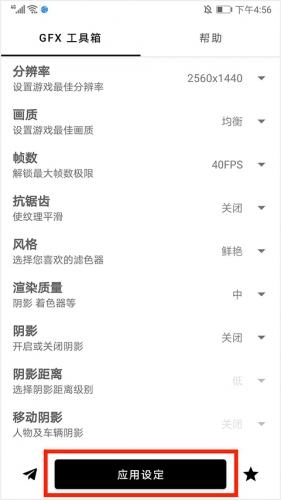 2、如图,当工具箱主界面上方游戏版本栏消失的时候,说明已经选择好游戏版本了,接下来设置好分辨率、画质、帧数等选项后点击下方【应用设定】即可保存设置,