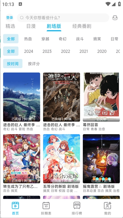 3、还可以按照时间和动漫题材类型进行查找;