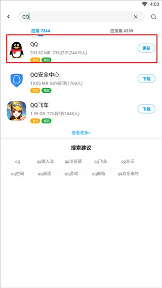 2、然后点击屏幕上方搜索框,输入你想要找旧版本的软件,如QQ;