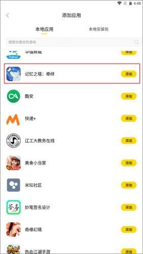 2、在本地应用中找到你想要添加到中的,然后点击右边的添加按钮。