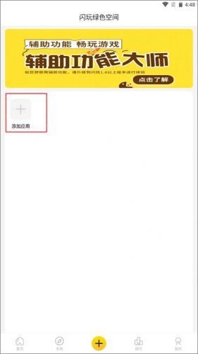 1、从【首页】切换到【+】界面,在删完绿色空间里点击添加应用按钮。