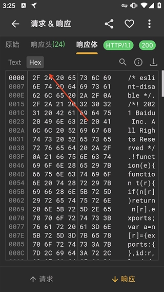 9、然后就可以点击自己的数据去拿响应体内的内容了,并且在查看数据时可以切换成文本格式或hex等视图模式下进行查看。