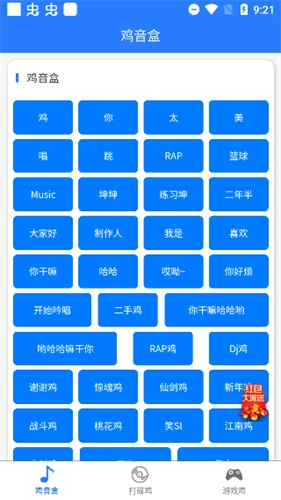 鸡音盒是一款以魔性音效和鬼畜创作为核心的休闲解压神器。玩家可通过简单点击混合坤坤语音、搞笑音效,生成洗脑循环的音乐或视频,还能体验"打篮球"视频通话"等互动小游戏。软件提供网友创作的爆笑素材库,并支持悬浮窗快捷操作,随时记录灵光一现的脑洞。深度优化的引擎确保低功耗运行,智能音效算法让每部作品都有"专业级"沙雕效果。无论是想制作鬼畜视频,还是单纯寻找快乐,这款应用都能让你笑到停不下来!