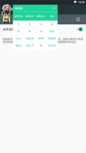 1、打开鸡乐盒软件,开启悬浮窗权限他就会缩小出现在屏幕上,如图所示;