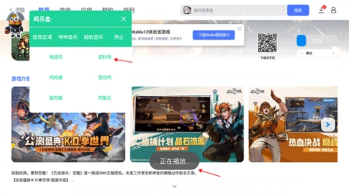 2、当我们在玩游戏的时候,就可以小窗口操作鸡乐盒,选择你想要听的音效;