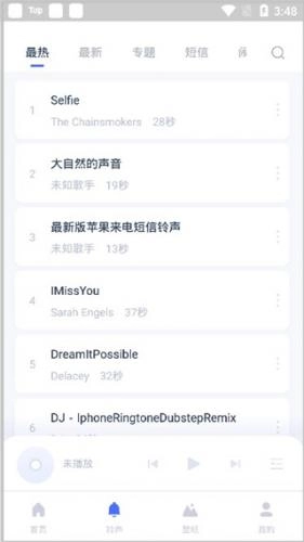 3、在“铃声”中也是分为:最热、最新、专题、短信等。