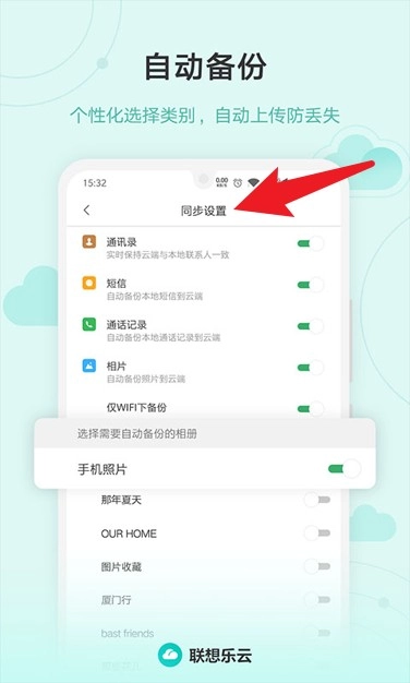 4、同步设置中可开启自动备份通讯录、短信、照片等,数据防丢安全更安心。