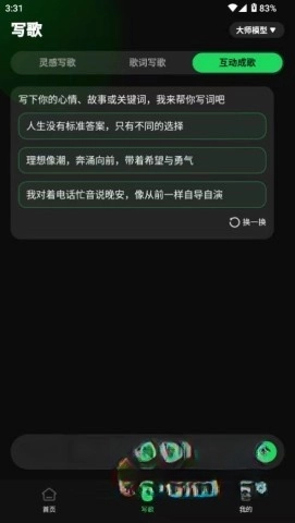 4、借助互动成歌功能,输入心情、故事或者关键词,就能获取专属的个性化曲目。