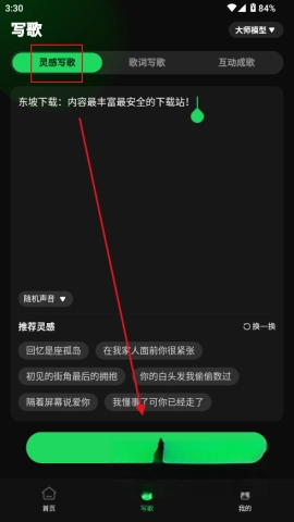 2、直接输入歌曲主题或参考灵感模版,激发创作灵感