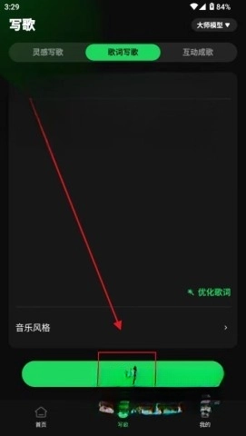 3、在“歌词写歌”模式里,用户输入的部分歌词或者关键词会由AI自动补全,生成的内容和主题相契合,不会对创作进度造成影响,特别适合在歌词创作方面经验不足的用户。