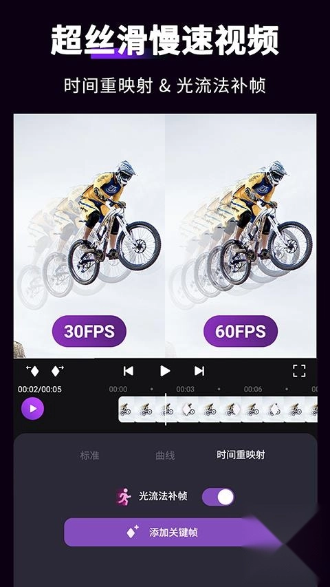 2. 光流补帧技术:光流法的补帧效果可与专业计算机软件AE相媲美,能够生成超流畅的慢动作视频,为视频作品赋予更顺滑的视觉感受。