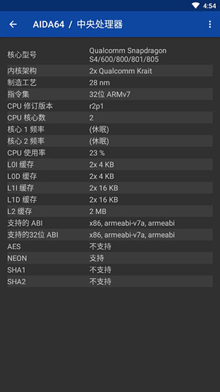 1. AIDA64的界面设计十分简洁清爽,手机的各项参数信息在这个页面上都能清晰直观地呈现出来。