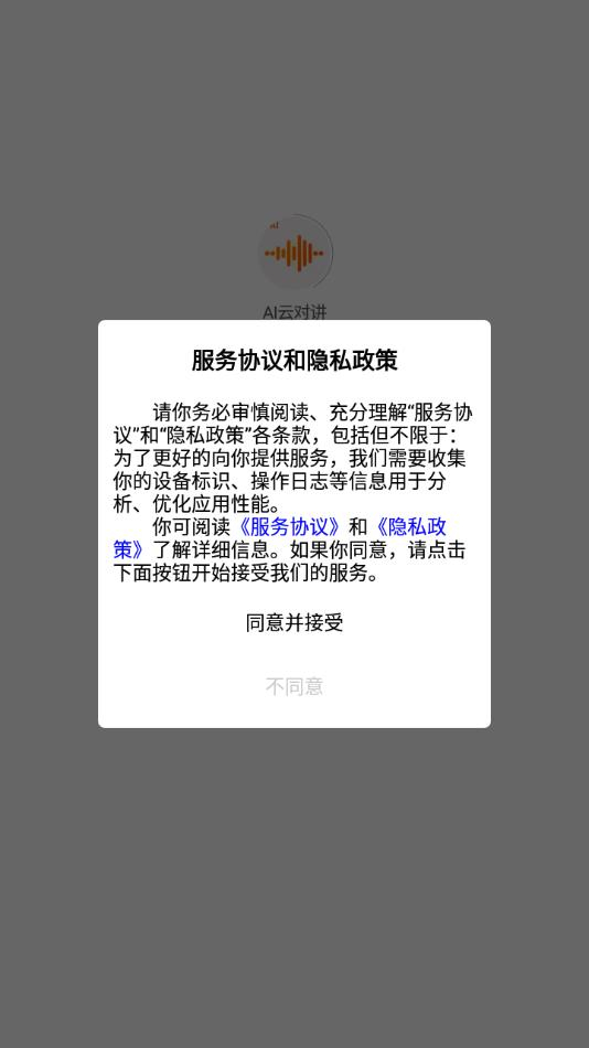 1、安装软件后打开,点击同意服务协议和隐私政策。
