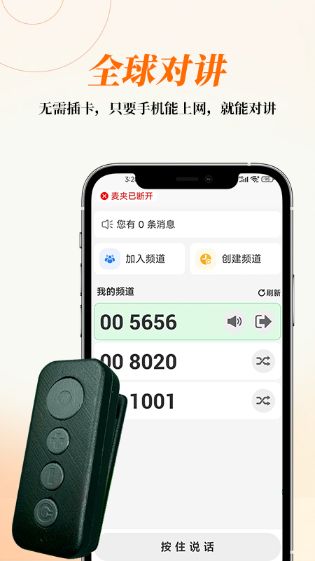 1、不需要插卡,只要手机可以上网,就能完成跨地域对讲,打破传统对讲在距离和网络方面的限制。