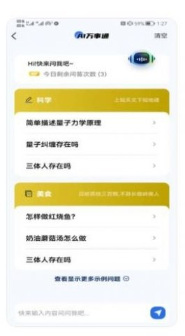 1、用户能够在这款软件里输入和工作、健康、生活等领域相关的问题;