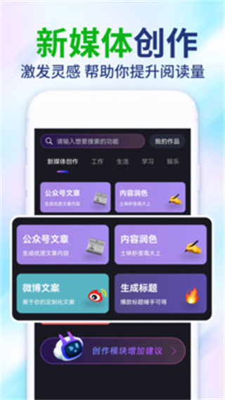 AI全能助手覆盖用户工作与生活的各类场景,无论是撰写工作总结、报告,还是创作日常所需的网络文案,都能为你量身打造个性化内容,带来更多优质产出。