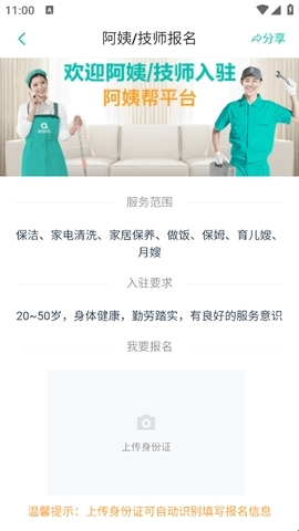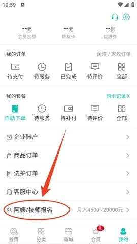 2、然后在该页面最下面找到“阿姨/技师报名”。