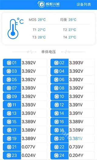 ANT BMS的中文名称是蚂蚁锂电池,是一款专门为电车车主设计的电池健康管理工具。antbms安卓版本现阶段兼容市面上大部分电车品牌,把软件与汽车电池通过蓝牙连接成功后,就可以在手机上查看电池的详细信息和各项参数。除此之外,正版蚂蚁bms还能够实时监测电池的状态,要是出现异常情况,系统会自动发出提醒!