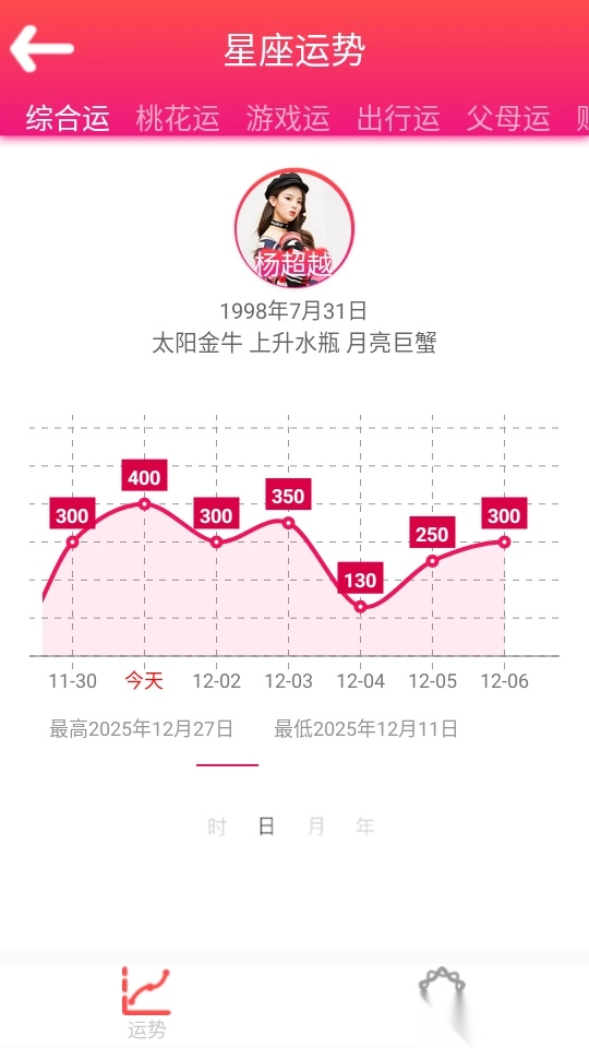 5、还能对明星的运势展开实时分析,对明星运势进行详细解读。