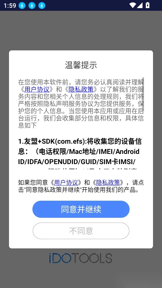 1、首先打开应用点击“同意并继续”按钮来进入中。