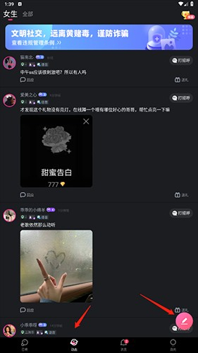 1启动应用程序后,找到界面底部的动态板块入口并点击进入,接着在该页面中找到编辑功能按钮并点击。