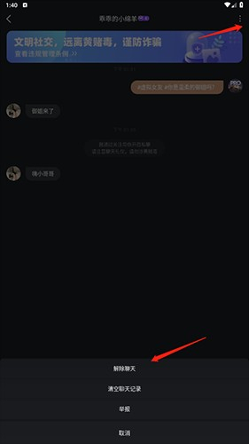 2在界面右上角找到扩展功能的按钮并点击,接着在弹出的选项中选择终止当前对话的功能即可完成操作。