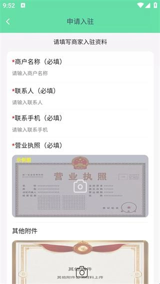 3、点击申请入驻,根据要求填入必填的信息,然后上传营业执照和对应的附件。