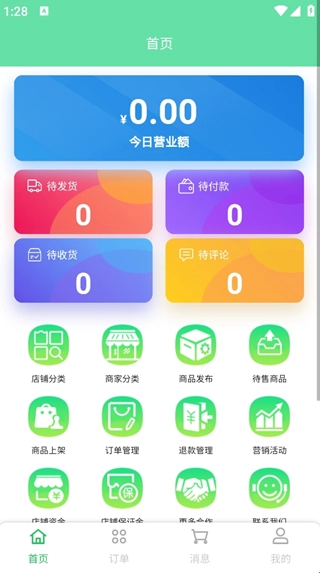 4、注册进入后就可以查看自己的工作台了,有今日营业额、待发货、待付款等等信息。