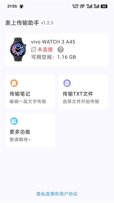 表上传输助手可与vivo手表搭配使用,能把笔记、文件等内容传输至手表端,支持在线编辑已传输的内容,也可以选择要传输的文件,整个传输流程都在手机上操作,并且还能查看传输的进度和历史记录。
