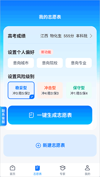 3、也可以自己在志愿表界面下选择新建志愿表来填写