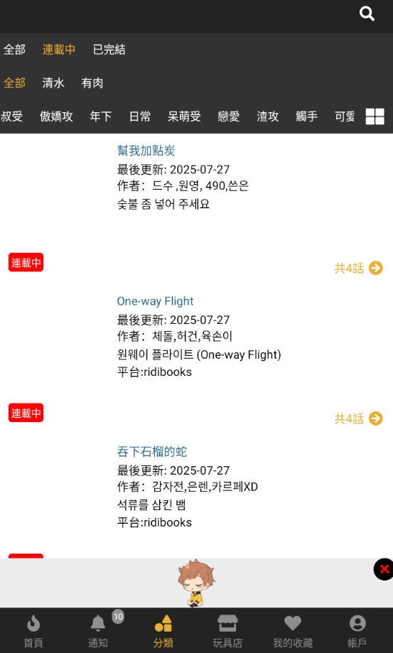 boylove漫画安卓版是专为 BL 漫画爱好者量身打造的专属阅读平台!这里汇聚了超丰富的 BL 漫画资源,无论你偏爱甜宠日常、热血冒险还是细腻情感向,都能找到合心意的作品,界面设计简洁清爽,操作起来流畅顺手,哪怕是新用户也能快速上手,一键找到喜欢的漫画,沉浸式享受阅读的乐趣。