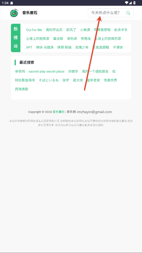 1.点击上方搜索框,输入关键词检索你想要收听的歌曲。