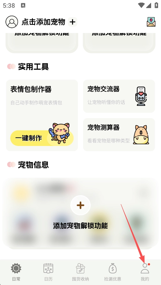 1、打开宠日常 App,在界面中找到并点击【我的】选项,进入个人中心页面。