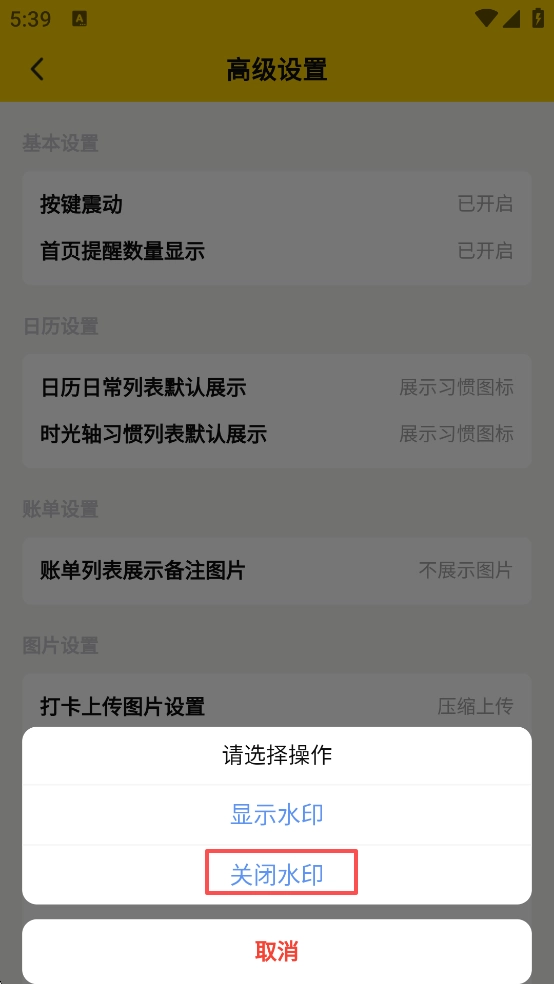 4、在图片水印设置界面中,选择 “关闭水印” 选项,即可完成图片水印关闭操作。