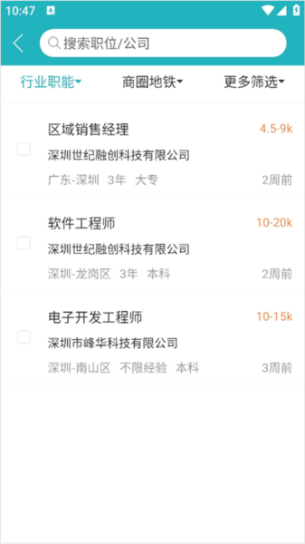 3完成所有需求选项的筛选后,页面会展示出匹配这些条件的岗位列表,接下来就可以逐个进行简历投递操作了。