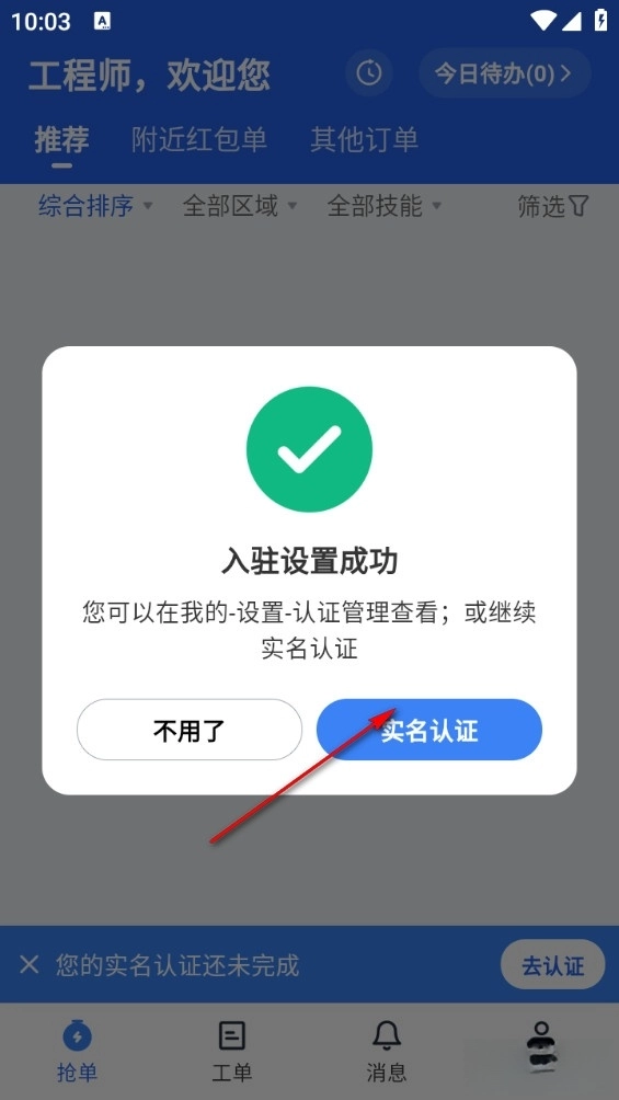 6、完成后跳出实名认证界面,填写认证就可以接单了