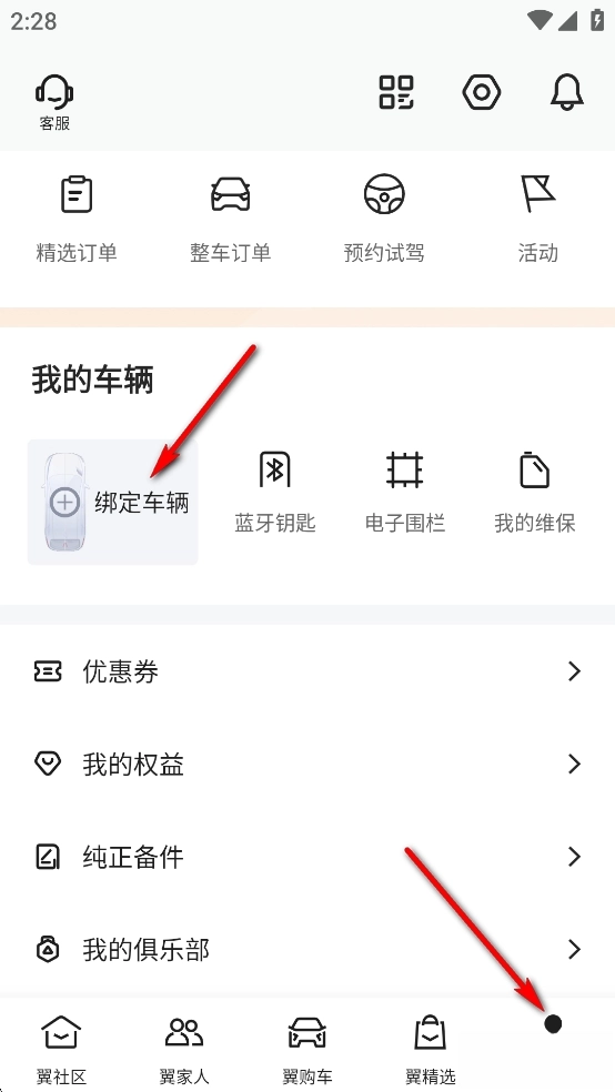 点击【我的】-【绑定车辆】