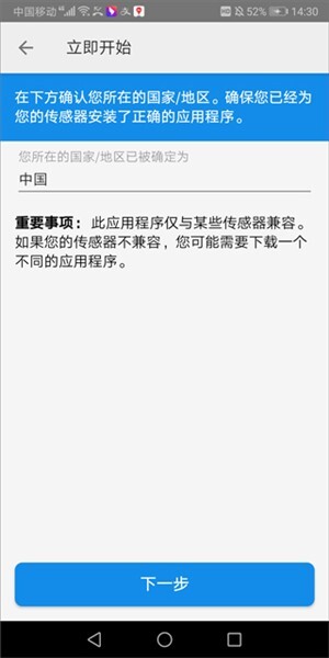 造成该现象的原因是:瞬感宝仅与某些传感器兼容,如果您的传感器不兼容,您可能需要其它不同的应用进行使用,下图是瞬感宝应用的提示信息截图画面
