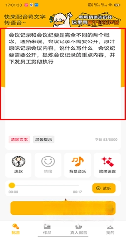 3、在转语音过程中,您还可以添加背景音乐,为配音增添气氛;