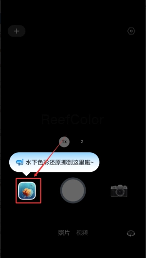 2、拍摄过程中通过悬浮控件快速切换色彩模式,浅水区可使用自然还原模式,深水区启用增强校正模式。