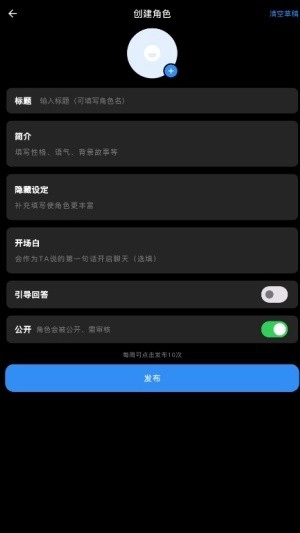 3、之后编辑个人角色信息并发布即可创建专属角色。