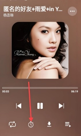 1、进入软件播放一首歌曲,找到上方箭头所指的图标