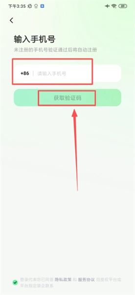 2、填写手机号获取验证码,完成注册或登录验证。