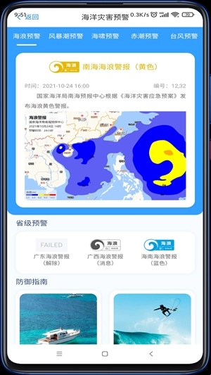 3.气象预警:依据气象数据,为南海海域提供台风、大风、大雾等气象预警信息。