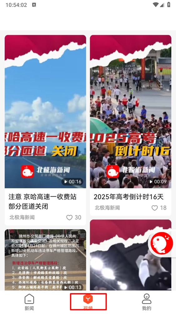 5、最后在视频板块,滑动可以查看最新的视频消息。
