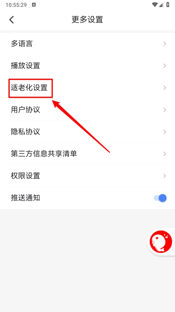 3、然后选择"适老化设置"。
