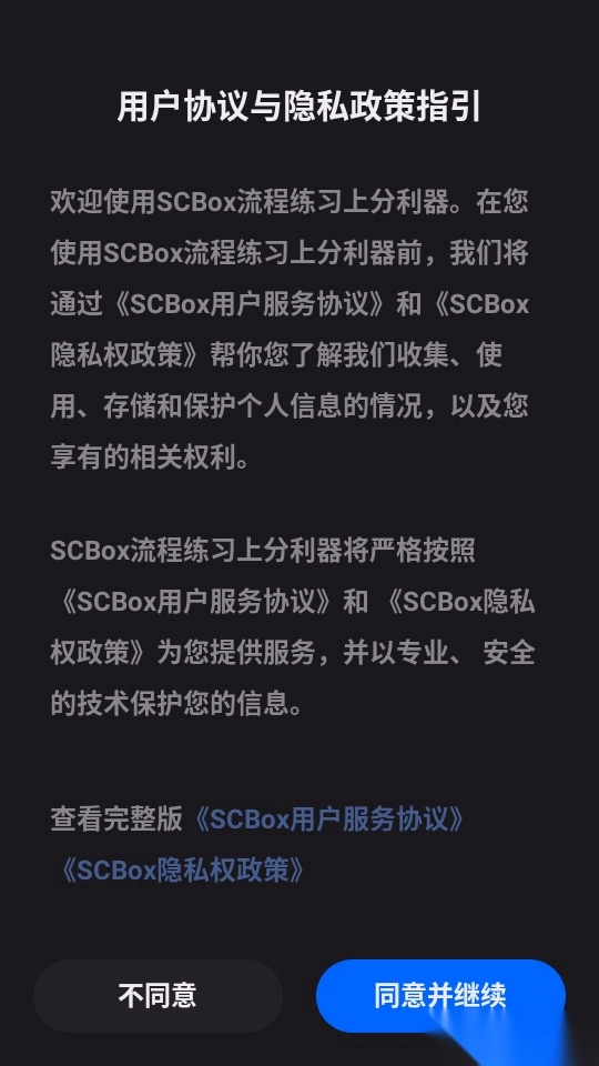 1. 首先打开软件,阅读相关说明后,点击“同意并继续”按钮进入下一步操作。