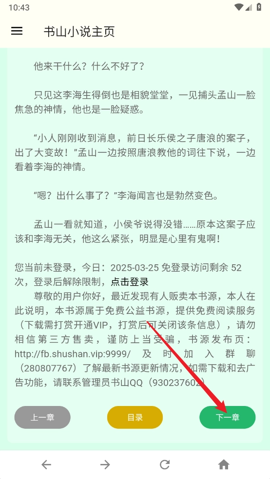 6、阅读至最底部后,点击“下一章”按钮,即可切换章节继续阅读。