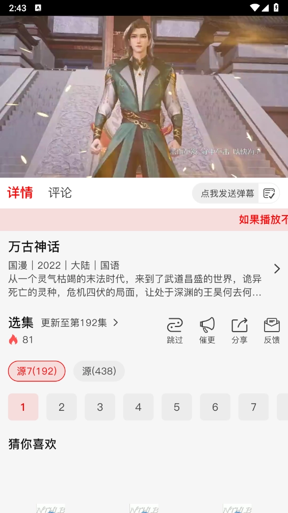 2、如图所示,这里以"万古神话"为例,点击任意播放屏幕。
